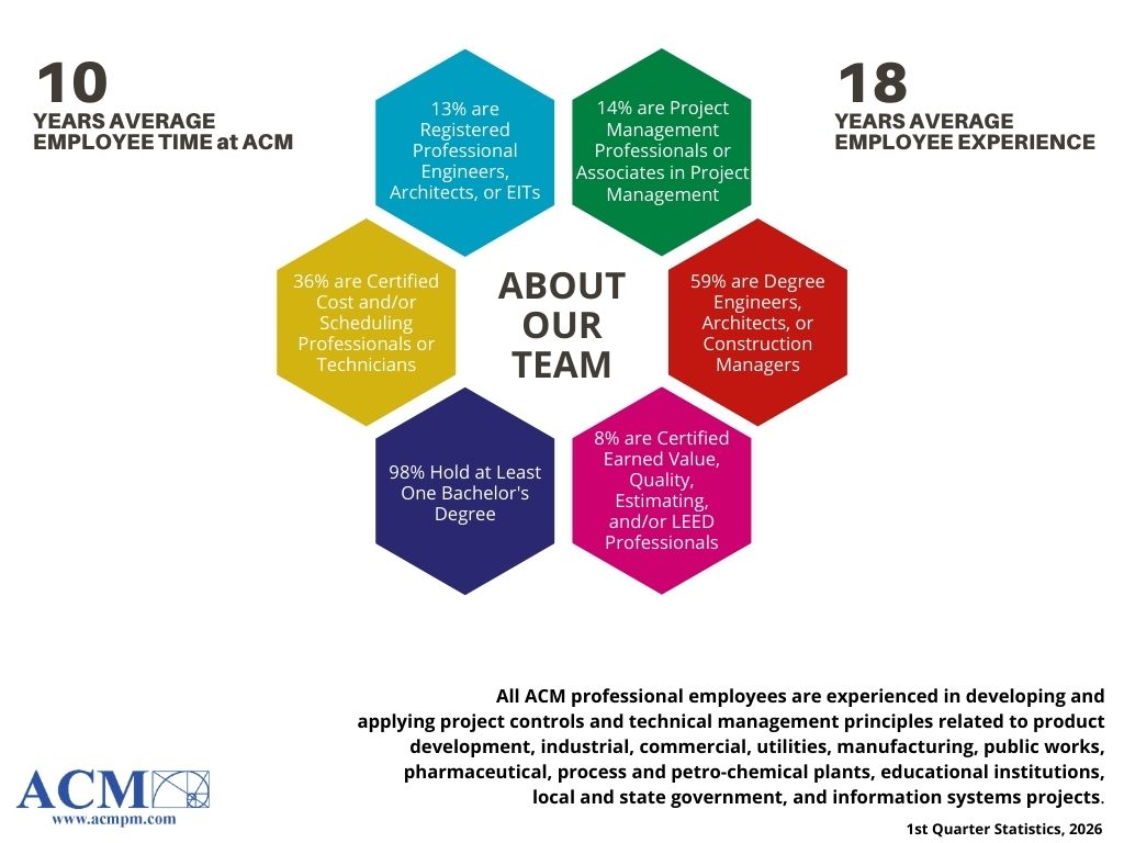 ACM’s interview process and selection coupled with best practice applications for managing successful projects are the core of business. ACM’s leadership are recognized as experts as they provide guidance and mentoring to less experienced as well as other seasoned professionals.